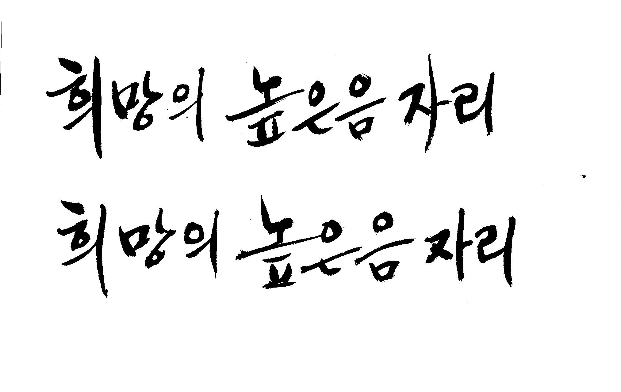 저도 캘리좀부탁이요 ^^;; 김철호 일반 0 6397 2009.01.14 10:59 > > > > > 희망의 높은음자리 > > > > 감사합니다 ^^ 꼭부탁드려욧 ㅎㅎㅎ > > > > 좋은 글이라서 신경썼는데 > 만족할 만큼 않나왔네요.. > 유용하게 쓰시길... >